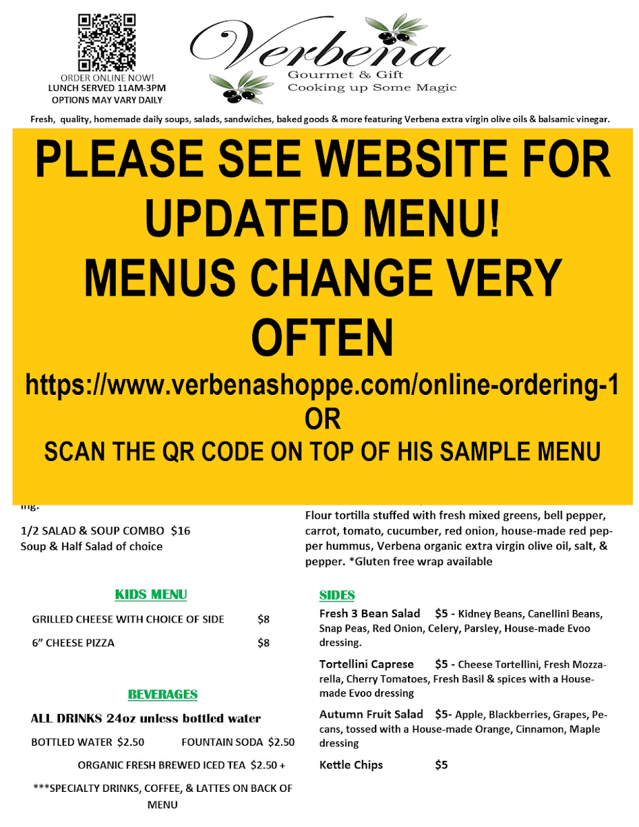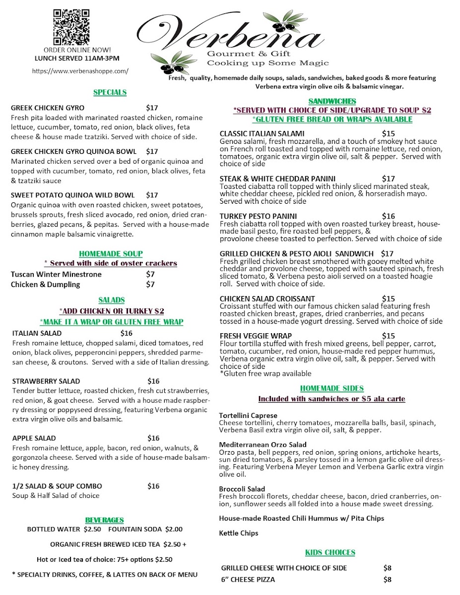 Verbena Cafe Coffee Shop & Tasting Room Menu